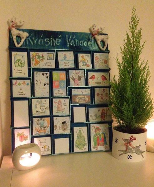 my máme letos adventní kalendář poprvé. zatím spíše jako loterii, jen s obrázky. až budou větší, bude to klasická forma s čísly 🙂