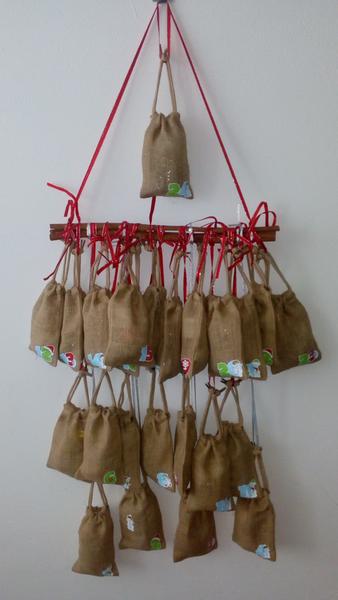 Kupovali jsme v Lidlu pytíčky a má to dcera zavěšené v pokoji. Uvnitř jsou domácí perníčky, ty nejvíc miluje, případně samolepka. Poprvé měla i puzzle, každý den jeden dílek, na závěr z toho byl obrázek jesliček. 🙂