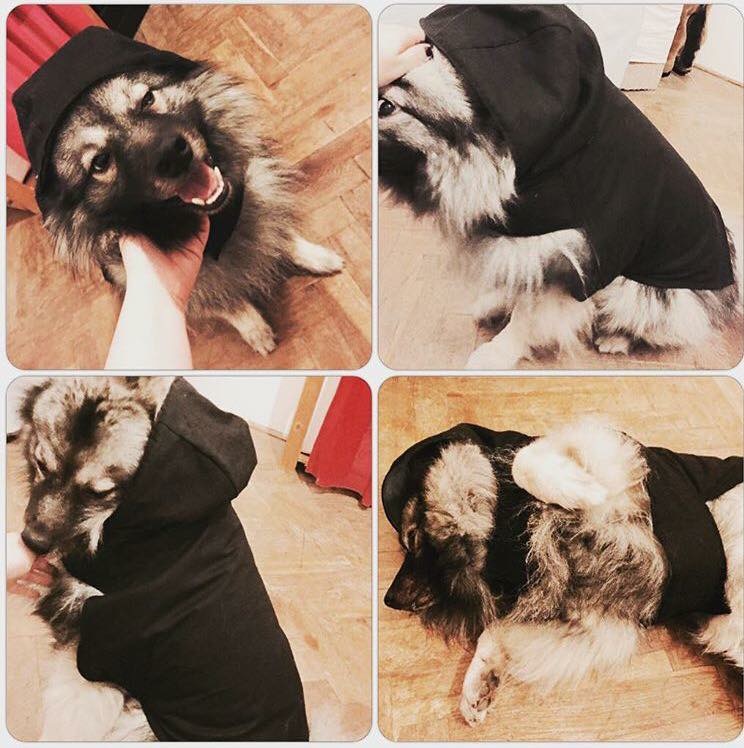 Jinak oblečení pro našeho chlupáče je nic moc, ale ušila jsem mu pláštěnku do deště a je v ní velký fešák!😍😊