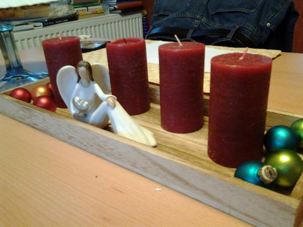 Vyndala jsem Vánoční ,,doplňky" , udělali jsme adventní ,,věnec" , v neděli zapálili první svíčku. Venku jsem udělala Vánoční truhlíky, koupili jsme svítícího soba :D Ještě musím umýt okna a dát do nich světýlka 😉 A už od podzima u nás hoří různé svíčky a aroma lampička s vonnými vosky 😉