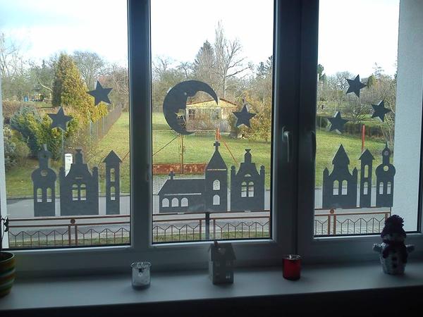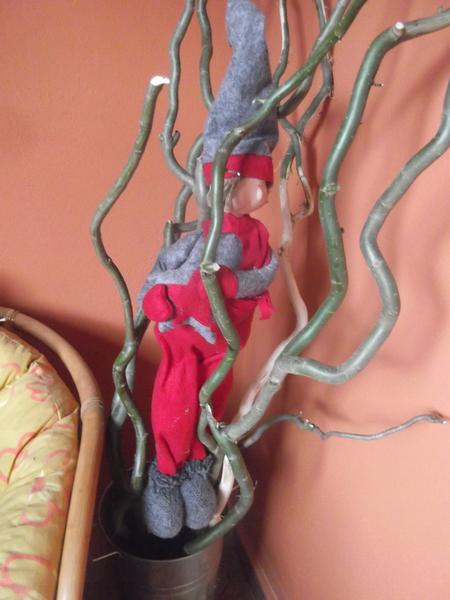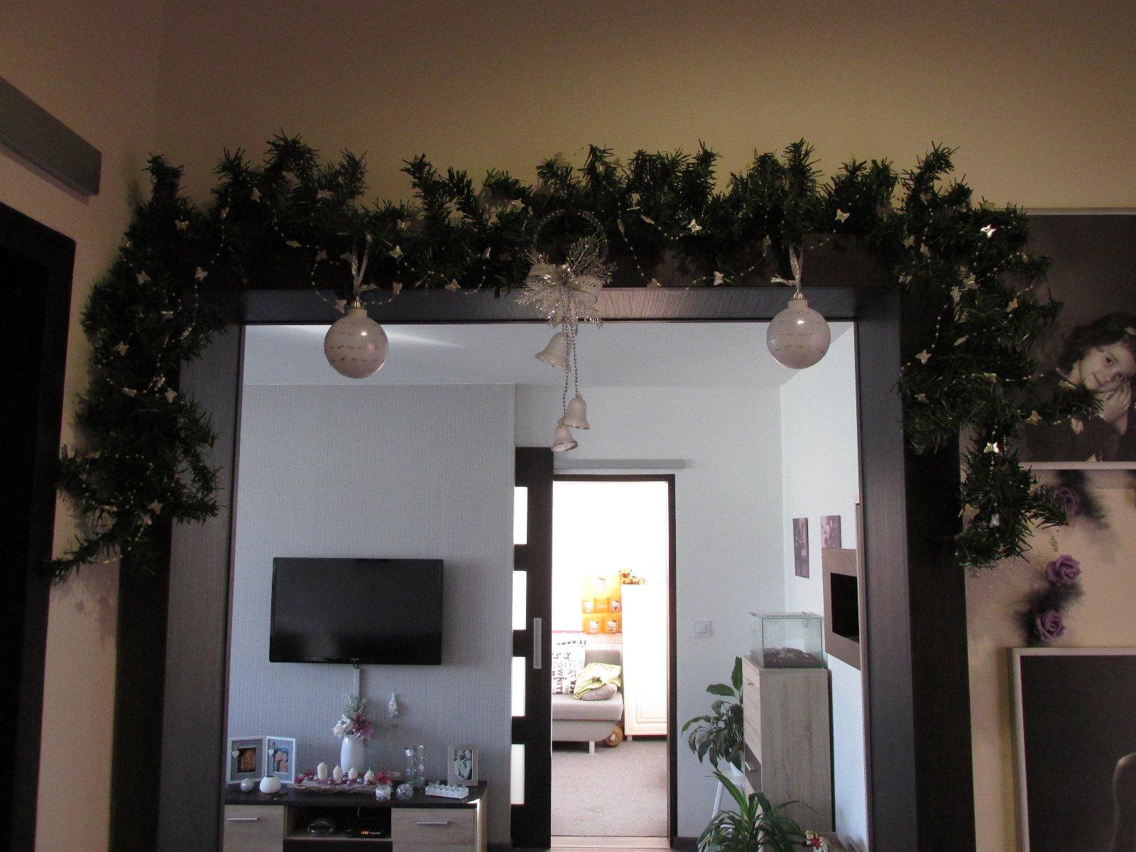 My už máme nazdobeno už čeká jen stromeček,ten budeme zdobot až 24.12 máme adventní věnec,girlandu na schodech ozdobenou ovocem,smrček ve vázičce na okně také ozdobené ovocem,na obrazích, zrcadlech a záclonách mám barevné řetězy v oknech nálepky,světýlka v oknech a vedle okna malý ozdobený stromeček na Vánoce ho vyměníme za velký