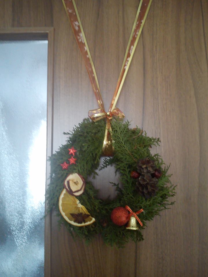 U nás letos adventní věnec v kuchynii obýváku, věnec na dveřích, větvičky z jedle ve váze se jmelím, vánoční vosky Yankee Candle a světýlka a vánoční nálepky v oknech..🙂