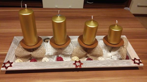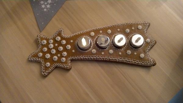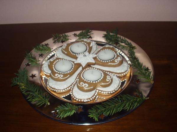 Také přispěji našimi výrobky, dělali jsme adventních svícnů víc, tak proto víc fotek, těžko se mi vybírá jedna. Něco zapichovaný patchwork, něco "zastrkávaný" patchwork, do toho trocha sladkého. Ta čtvrtá fotka měl být také adventní svícen, nakonec z toho bude ozdoba na dveře. Na poslední dvě fotky jsem nejvíc pyšná, než jsem si přinesla svoje zdobítka, tak malá dcerka (2 a 1/4 roku) už svícen nazdobila po svém. Neměla jsem to srdce jí to zrušit. Naopak, jsem na ni moc pyšná a jsem ráda, že podědila "robivé" ručičky. Navíc jsem si jistá, že takový adventní svícen opravdu máme jenom my. Jen z bezpečnostních důvodů máme svíčky sice z pravého vosku, ale se světýlkem na baterky.