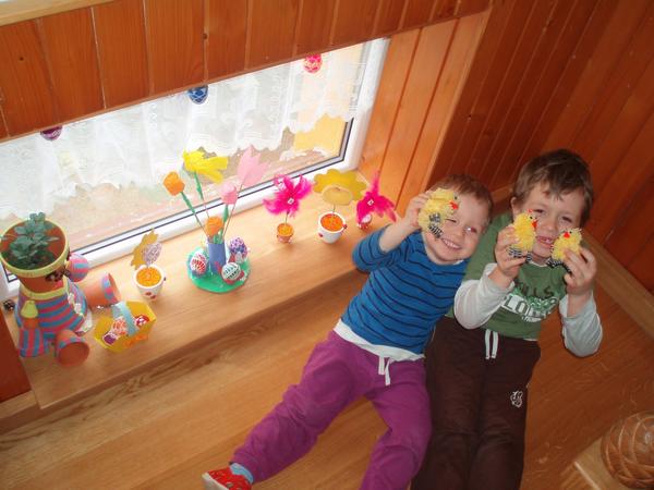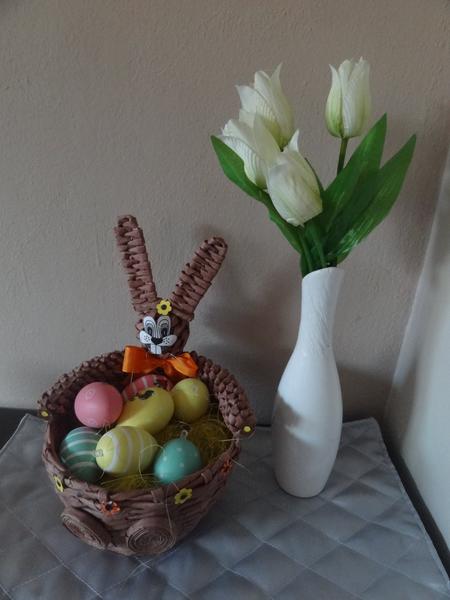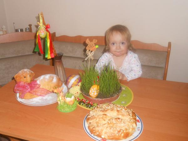 o výzdobu se mi stará už syn ve školce ...beránek je sice moje práce, ale za jeho mohutné asistence, které se dožadovala i dcera....mazenec samozřejmě je taky, ale bohužel vypadalo to letos slibně už jsem se těšila na náhernou fotku velikonočních dobrot..bohužel potvora rochnul...těšínská jablíčka bývají trpká (to už říkala moje babička)