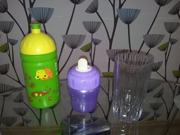 Naše děti pijí z flašek i skleniček, ale vždy na tom musí mít nějaký obrázek 🙂 ovšem nejlepší je voda ve vaně 😀