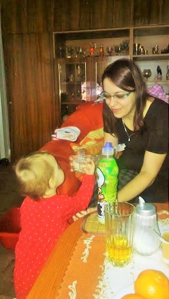 Maminka ze své oblíbené skleničky od tchýně 🙂