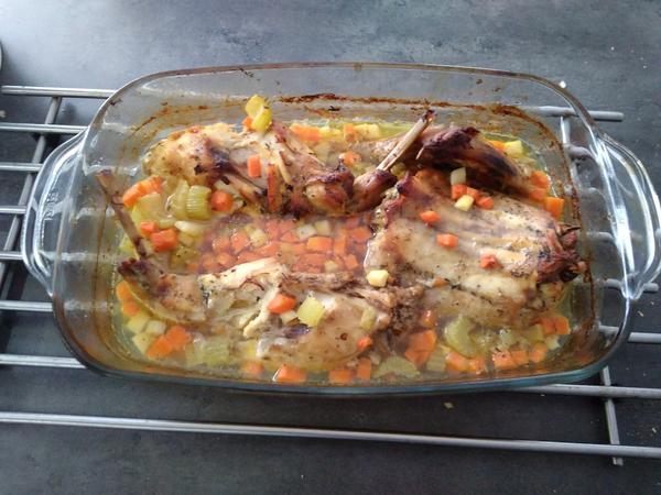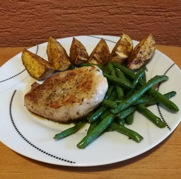 Fotku nemám,už jsme snědli..😉vařila jsem kuřecí prsa naklepat,osolit opepřit,potřít plnotučnou hořčicí a zakys.smetanou,dát do pekáčku na peč.papír,přidat angl.slaninu,cibuly a šunku upečeme nakonec posypat sýrem..k tomu jsem uvařila brambory ve šlupce a když byly vařené nakrájet na plátky a opéct na másle na pánvi,dělala jsem poprvé a všem moc chutnalo ..jo a zeleninová obloha rajčata okurky