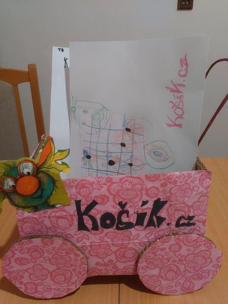 Na dětech bylo nakreslit maskota pro 🛒 Košík.cz 🛒 a já se ujala výroby samotného košíku,do kterého se musí vejít co nejvíc věcí, kor před