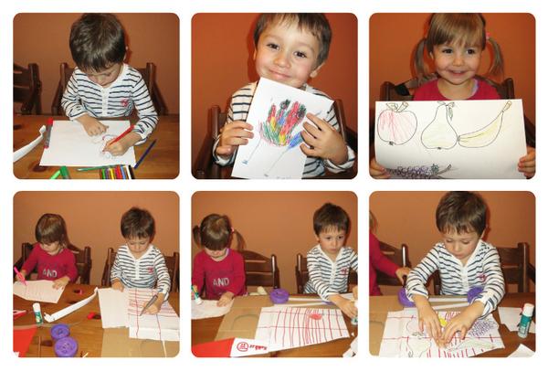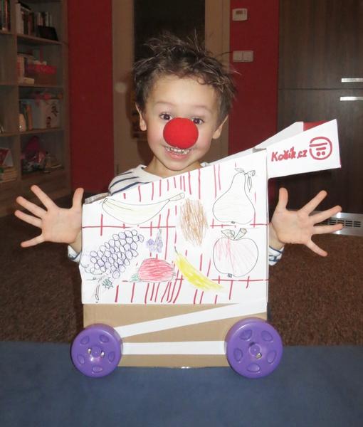 Dílo je společné, já tvořila nákupní košík, Tom ho pomaloval, nakreslil ovoce, Natálka vybarvovala a společně se lepilo 🙂