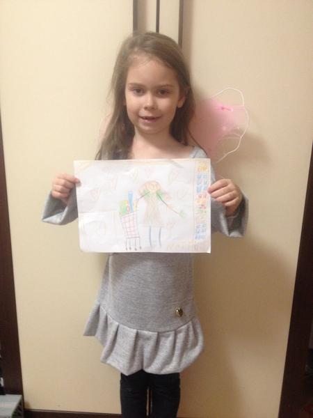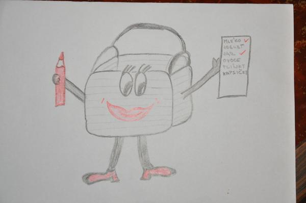 Výtvor ji stál trošku vztekání, jelikož 1., 2. ani 3. obrázek nebyl dle jejich představ, ale ten poslední už ano.🙂 Takže v jejích očích je maskot víla, která nakoupí a rychle přenese nákup tam kde je potřeba.