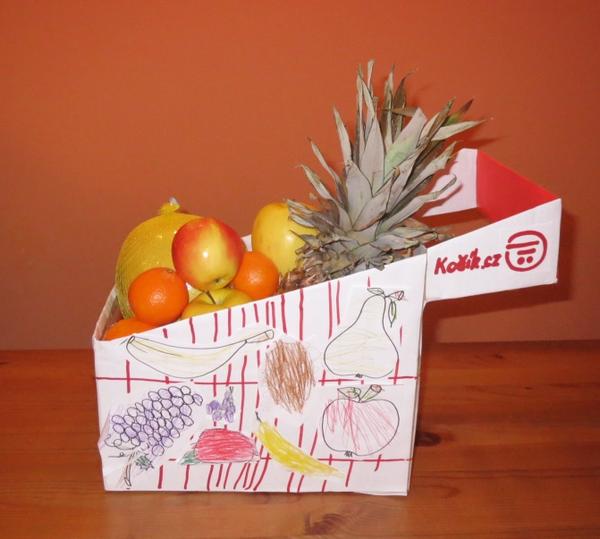 Košík jsme hned zužitkovali jako veselý box na oblíbené ovoce 🙂