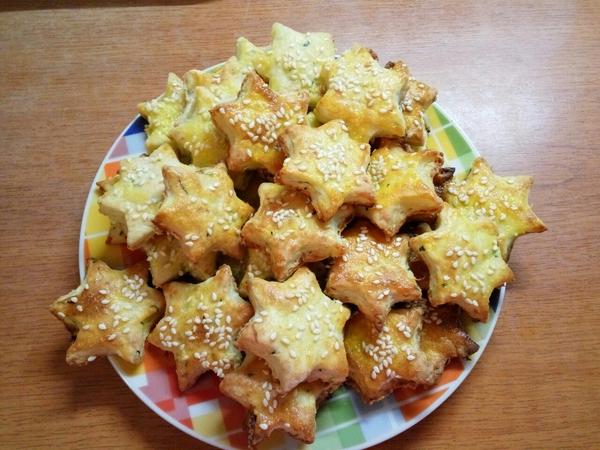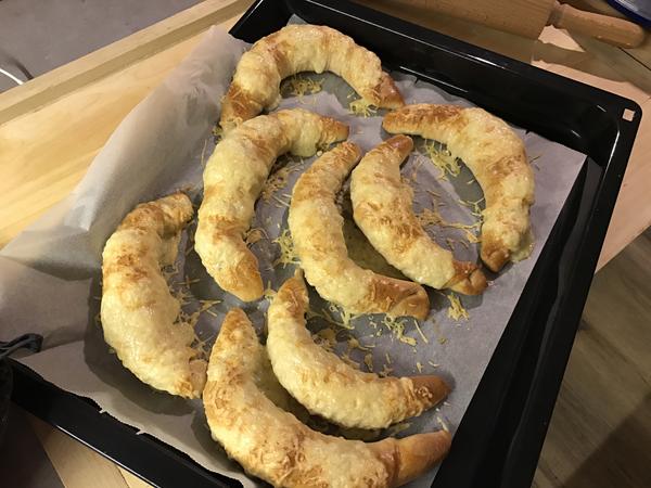 Poté si vytvoříme z těsta menší kuličky, ze kterých si vymačkáme kolečko a naplňujeme marmeládou doprostřed. Poté těsto přehodíme napůl a konce spojujeme pomocí vidličky. Mrkvové šátečky dáme na plech vyložený pečícím papírem, potřeme rozšlehaným vajíčkem a dáme upéct. Šátečky pečeme při 170 °C dorůžova, ke konci můžeme zvýšit na 200 °C.