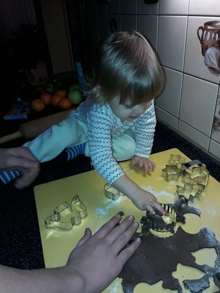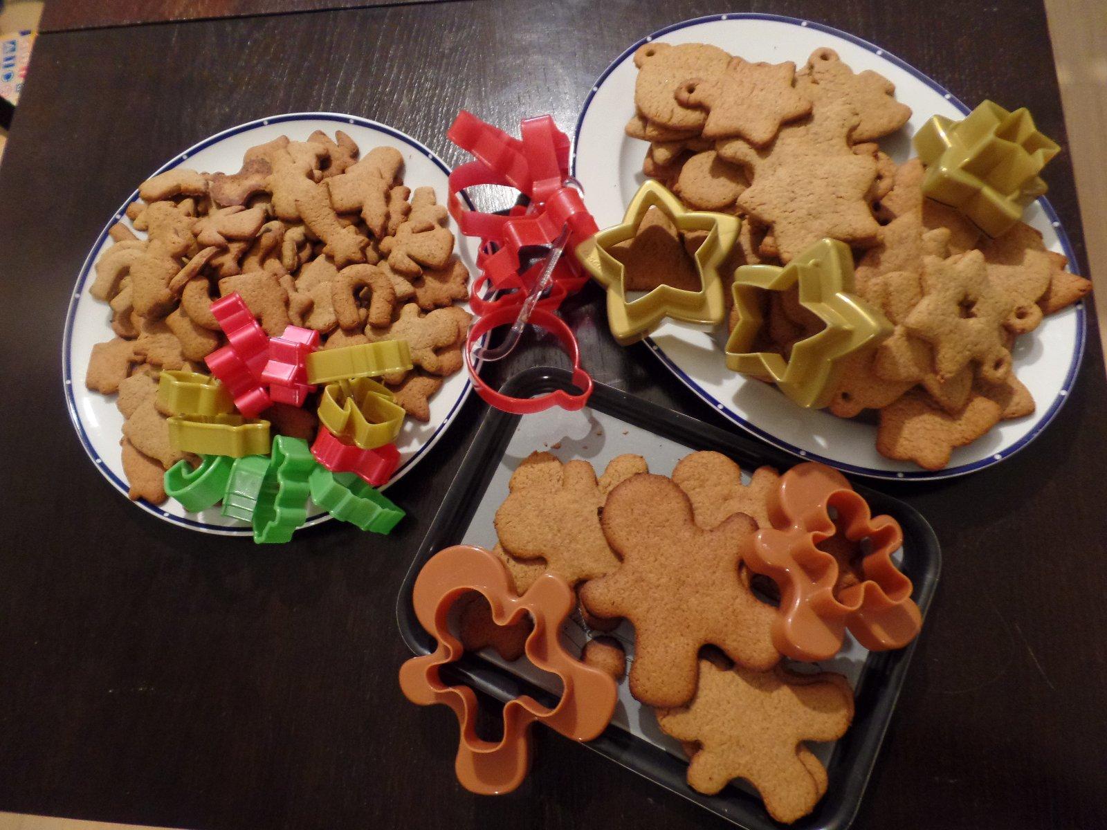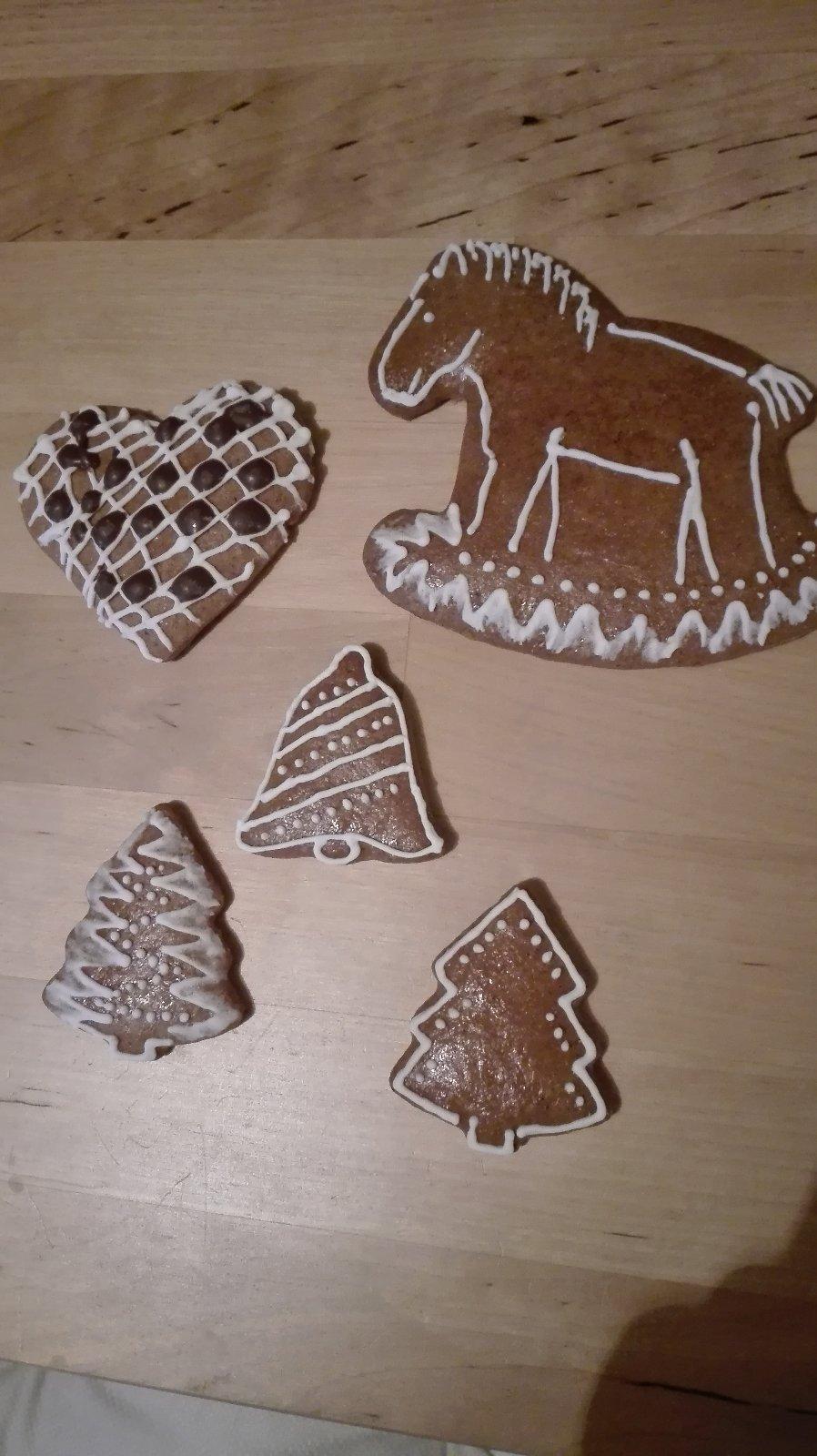 Vyválet na 0,5cm placku, vykrajovat tvary a péct v troubě na 170° cca 10 min (každá trouba peče jinak 😉 Přidávám fotky našich perníků 🙂