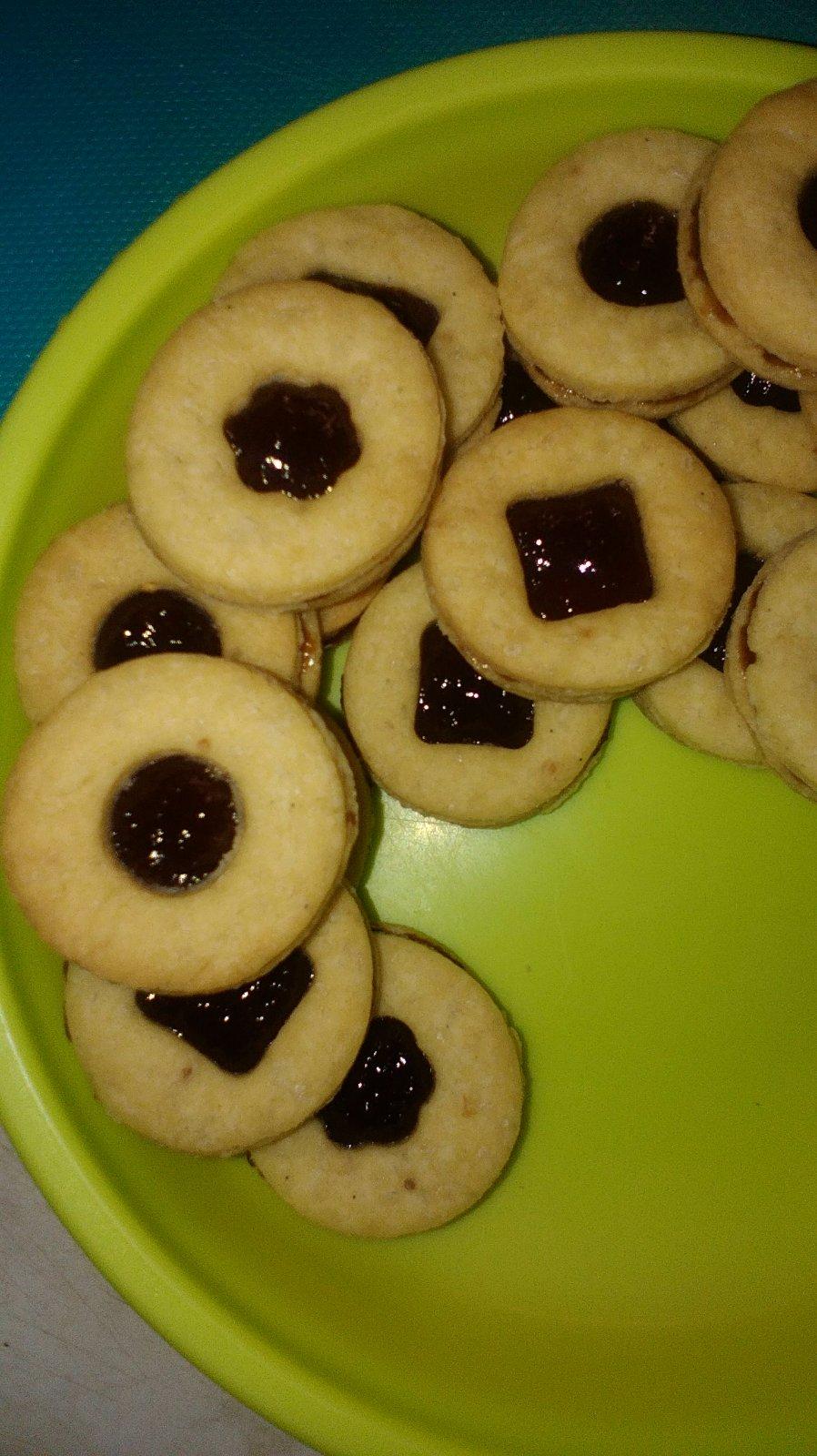 Mouku smícháme se žloutkem, změklým máslem i oběma druhy cukru. Nakonec vmícháme jemně mleté mandle a citronovou kůru. Všechno důkladně promícháme a vypracujeme hladké těsto, které necháme aspoň hodinu odpočinout v chladu. Z vyváleného těsta vykrajujeme různé tvary, pečeme na 180 do zlatova. Po vychladnutí slepujeme povidly.