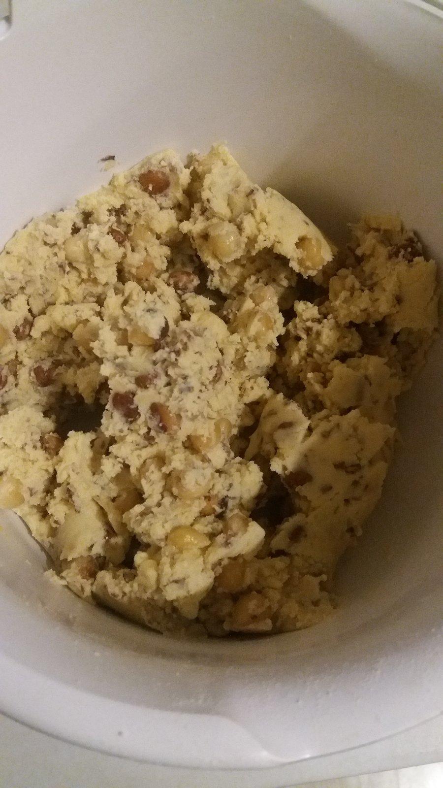 Ostatní suroviny smícháme, oříšky lehce obalíme v hl. mouce a vmícháme do těsta.