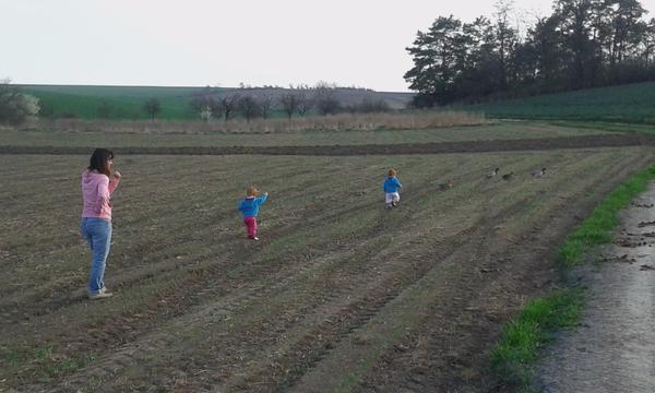 chodime do prirody kazdy den. mala ma nejradsi zviratka,takze chodime krmit kacenky na rybnik,koukat na konicky a jina zviratka 😉