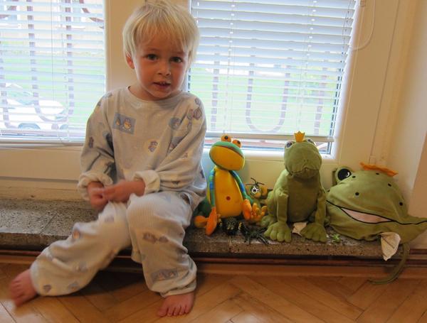Syn Jindříšek má nejradši zvířátka, která by někdo označil za havěť: raky, pavouky a žáby... Tomu odpovídá i výběr plyšáků na fotce. Mám ale dojem, že jde jen o hračky. Když vidí opravdového pavouka, začne ječet a nese mi smeták😉 Asi jako naše babička, která má plyšovou myš a přitom málem dostala infarkt, když jí kocour přinesl a v bytě vypustil myš opravdovou.
