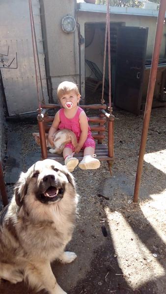 Naše dětičky mají rádi pejsky. Nejraději měli babiččina Badíka, který bohužel letos na jaře umřel. Děti zatím nezapomněli a nosí mu na hrobeček kytičky (čtyřletý syn říká hezky "že mu donese květinku"). Nové velké štěňátko německého ovčáka už tak oblíbené není, protože si s nimi chce hrát a stále je nějak zlobí.
