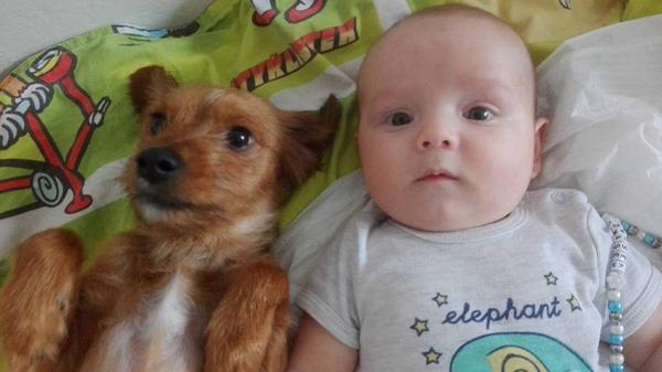 Nejoblibenejsi zviratko nasi pul rocni Ninusky je babiccin pejsek. Mala Uňa, je to mala jorksiri holcicka a Ninuska ji ma moc rada. 🙂