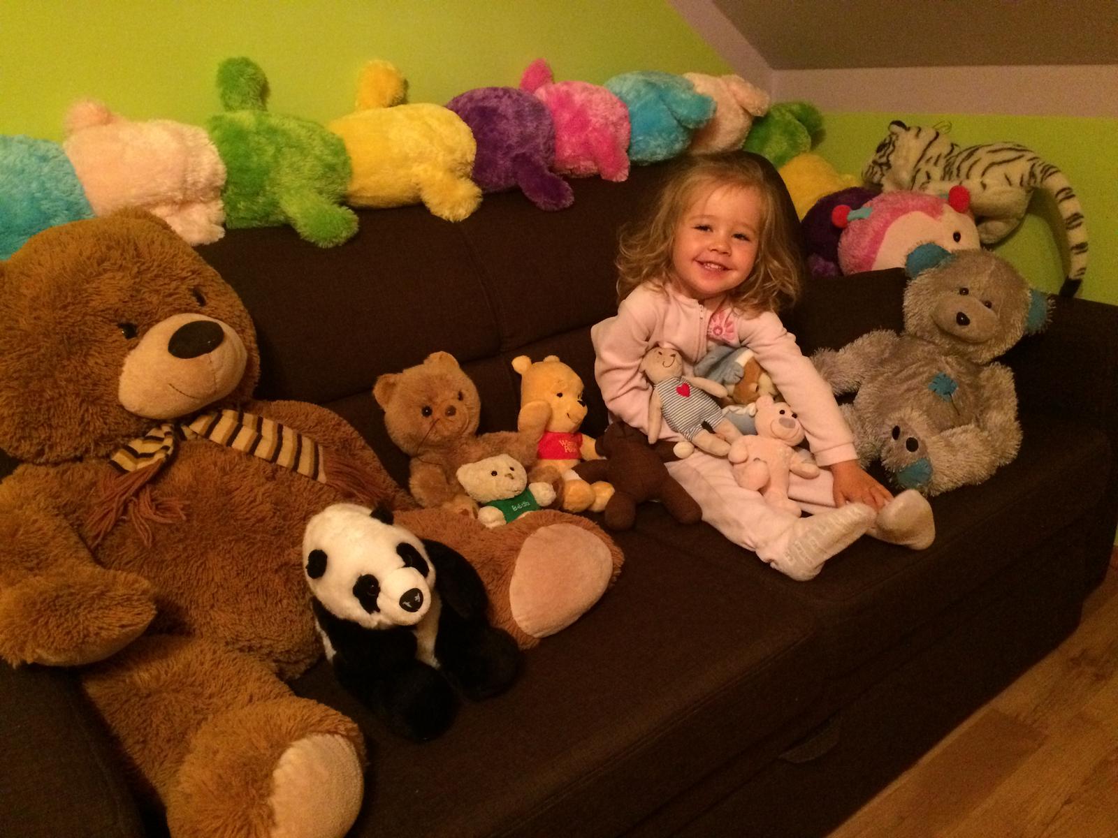 @bara_lego dobry den, u nas uz skoro rok vede medved v jakekoli podobe. Je to od te doby, co ho dostala nase dcerka Zuzanka k Vanocum. Byl to posledni darek, ktery lezel pod stromeckem. (Ikdyz byl ten nejvetsi). Od te doby medvedy miluje; a rika jim "bibi". Za ten rok uz jich ma solibni stado....