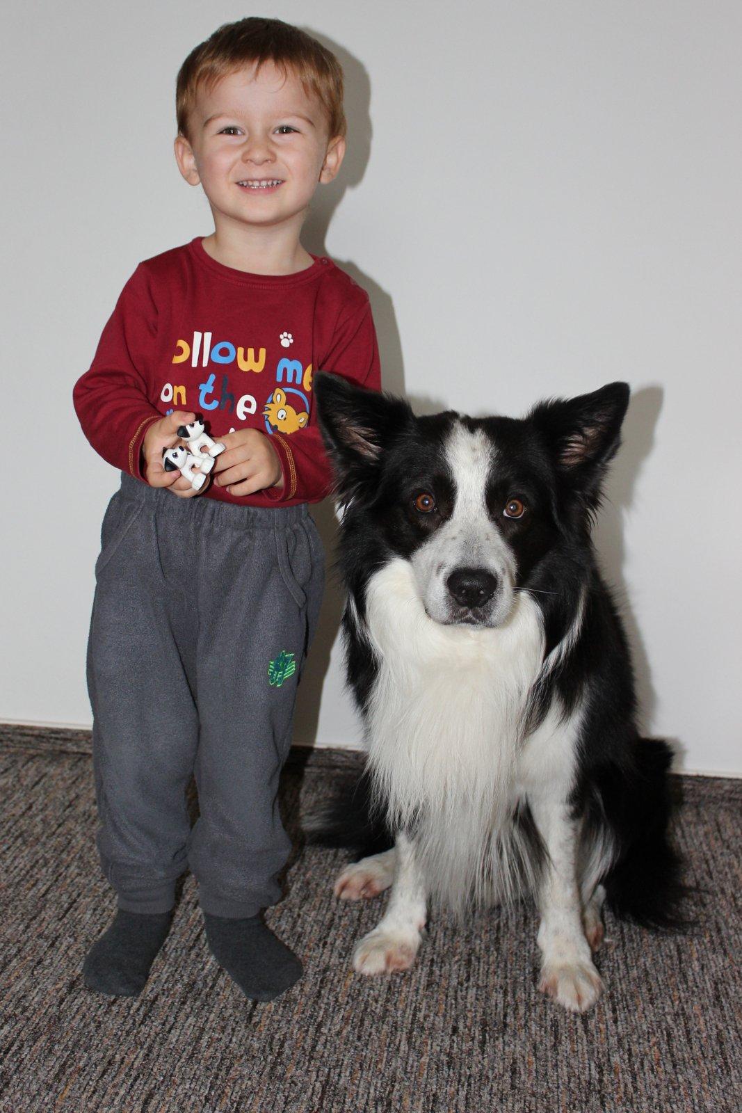 Tak u nás určitě vede náš zlatý retrívr Oskar a hned za ním kocour Čenda 🙂, je úžasný vidět, jaký k nim má vztah už od mala-každé ráno sype granulky do misky a pak jde zavolat Oskara na snídani, když stojí Osky u dveří, že chce jít na zahradu, hned ho jde pustit (jsou mu 2), x-krát za den by mu dával psí mlsoty, takže to musím krotit, Oskar si ho za to předchází 😀 spát by nešel bez svého opičáka, kterého i krmí a přebaluje, ale přes den si krásně vyhraje i se zvířátky z farmy, neustále je převáží na voze za traktorem 🙂