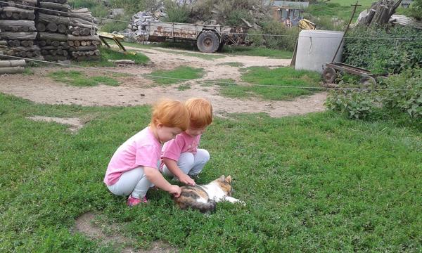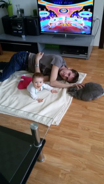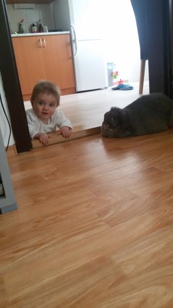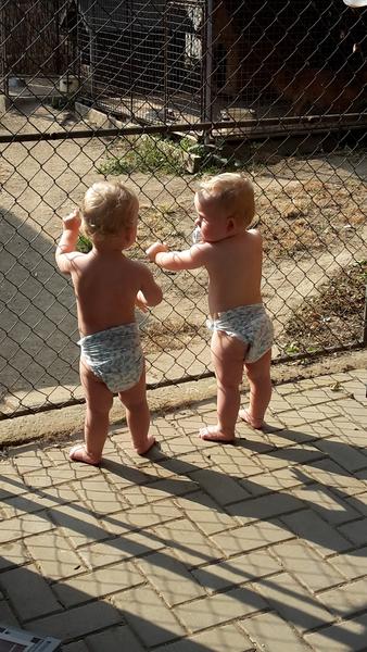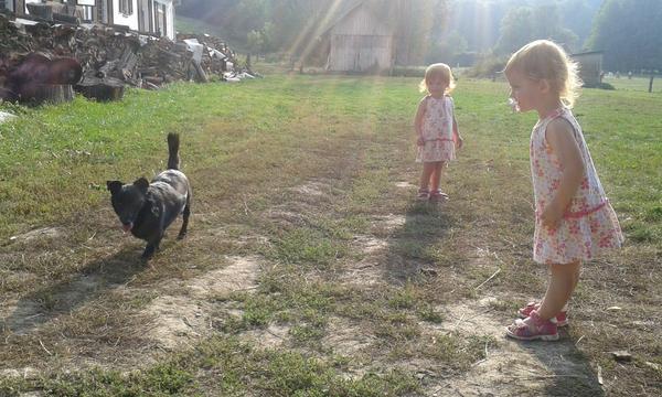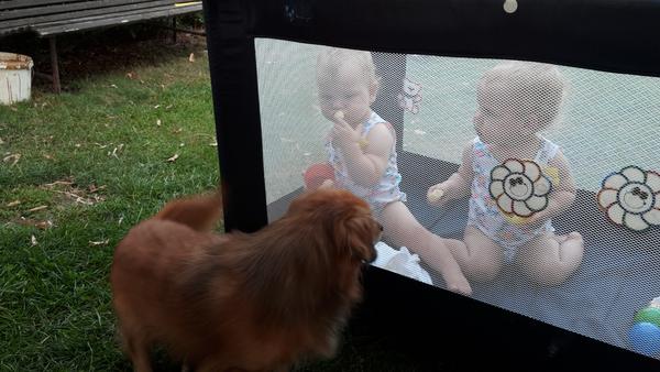 Holky mají rádi našeho pejska Betinku. Když se řekne Beti tak hned koukaj kde je a snaží se štěkat. Fotku Betinky mame nad přebalovacím pultem a při každém přebalování a převlékání když pláčou tak se řekne Betinka Tak holky začnou koukat na fotku a uklidní se. Jinak takto holky Betinku hlídají .takže u nás zatím pejsci ale už víme o slepickach a kohoutovy a začínají koko krku ☺. Takže zvířátka nás začínají bavit a rádi objevujeme nové a nové