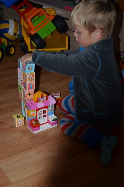 Mi sice nemáme lego Duplo ale máme podobné kostky žako malá si nejraději hraje s autickama které si složí baví ji staveni baracku komínů a různých tvarů 🙂