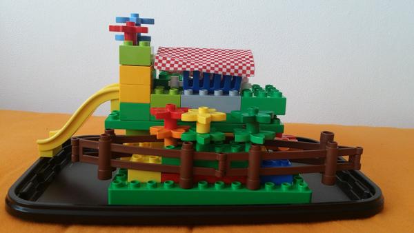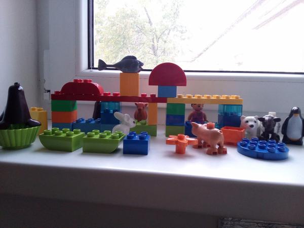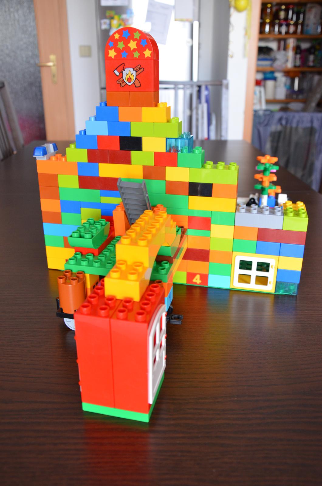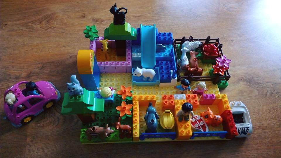 Dlouho jsme se synem přemýšleli, jakou stavbu postavíme, protože už je tady tolik pěkných věží a domečků. A nakonec jsme se rozhodli, že postavíme NAŠI ŠKOLKU, včetně velkého pískoviště a zahrady, našich paní učitelek (a pana učitele, který v této školce skutečně je) a synových kamarádů. Nakonec z toho vyšla parádní hra, kterou bysme ani neobjevili, nebýt této soutěže. Syn si stavění školky parádně užil. Z figurek vybíral ty, které nejvíce vzhledem odpovídali jeho skutečným učitelům a duplo figurky dětí si podle vzhledu pojmenoval podle svých skutečných spolužáků. Samozřejmě se mezi firgurkami nachází i on sám 😀 Takže naše duplo se na jedno odpoledne proměnilo ve školku skutečných dětí.