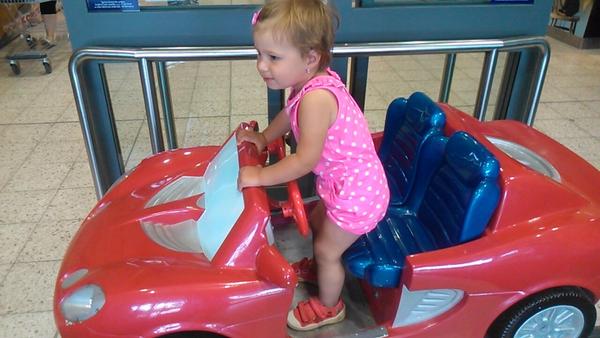 U nás se jezdí ve všem a na všem co má kola. Takže auto, autobus,, tramvaj, vlak, metro, kolo, odrážedlo, koloběžka, člun, parník, vozítko v ZOO, kde tatínek fungoval jako koník a malá na něj pokřikovala hijéé a ještě občas na poníkovi. Největší zážitek měla, když s babičkou jela autem pro kuřátka