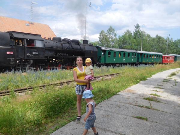 Vlak obě děti milují, ale cestujeme nejraději jen pár stanic někam na malou procházku nebo na hřiště. Děti mávají všemu za oknem a když čekáme na nástupišti tak mávají zase všem vlakům. Už jsme jeli i historickým vlakem, tak viděly, jak "mašinka bumbá vodu" a celé týdny vyžadovaly povídání o staré mašince, co jezdí na uhlí a bumbá vodu.
