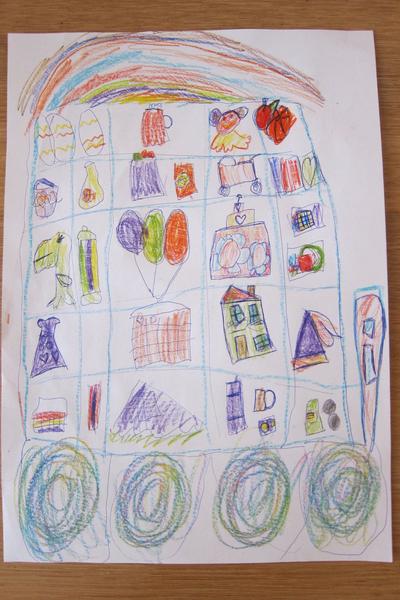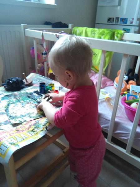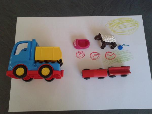 S dcerkou ktere jsou přesně 2 roky a 10 dní jsme nakreslili náklaďák ktery veze mooooc lasky a jednu malou holčičku.
