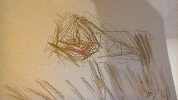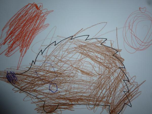 Kreslit ještě neumí. Miluje koně,pejsky a kočičky, ovečky .... Snad všechny. Zkusila jsem se ho zeptat a řekl mi rybu 🙂 ale před chvílí ji viděl a pojedeme k tetě co rybičky má a už se tam těší