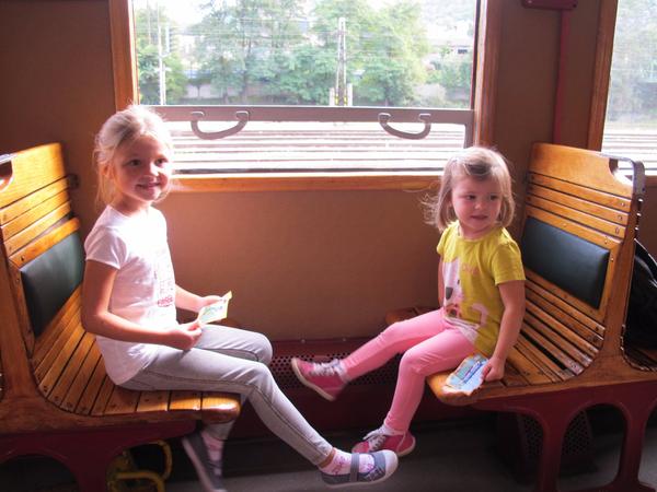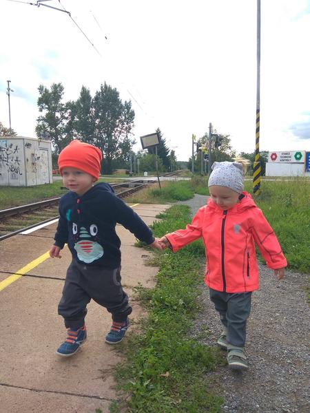 Pokud pominu každotýdenní cesty na nákup, tak nejčastěji cestujeme vlakem (a kousek autobusem, abychom se dostali na ten vlak). Vlakem jezdíme hlavně k babičce a dědovi a obě holky tak cestují od úplných miminek. Ta cesta je dobrodružství sama o sobě, nalodit se s holkama a všema věcma do vagónu, najít místa, usadit se. Pak hned mají hlad a žízeň. Pak zase lovíme jízdenky, někdy je průvodčí nechá, aby si svoje jízdenky samy orazítkovaly, cestou projíždíme několika tunely, lesem s "bažinama", vyhlížíme Karkulku a vlka. A v cílovém nádraží vyhlížíme, kdo nám přišel naprosti, a to bývá radosti! I když jezdíme pořád tu stejnou trasu, pořád to má svoje kouzlo.