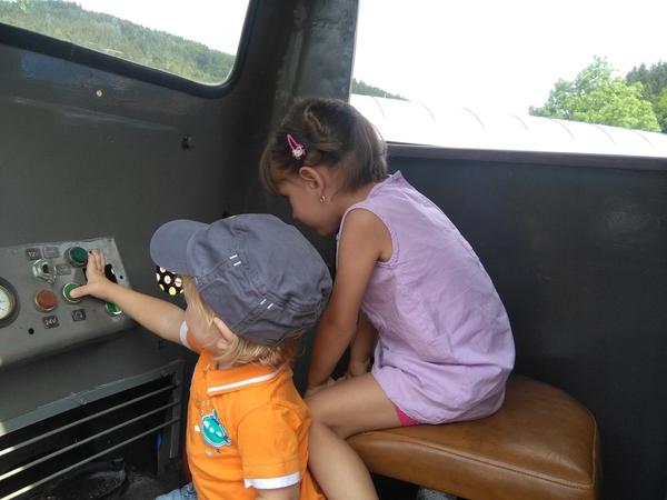 My nejradši jezdíme na vláčky do Rajnochovic, kde nadšenci opravují mašinky a vagónky z lesní železnice. Vláček má velikost akorát pro děti a není nad to, když si můžou sami vyzkoušet všechna tlačítka ;)