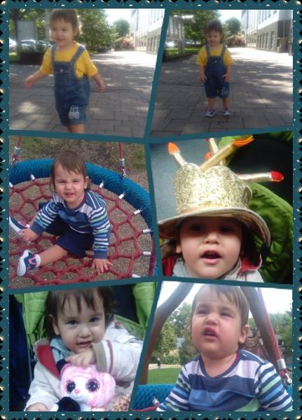 Tak my jsme toho s Bruníčkem zažili dost hodně a to i komických momentů. Jak je mimo kočárek to je tedy zábava , utíká jak malej Bolt , chytat ho mezi lidmi je jedna radost do toho vydává do slova tarzanské zvuky jako z džungle , jedno se tak rozeběhl...až si dal na čumák a pak se po zbytek dne šklebil s bebíčkama jak již vidíte na fotce , další zážitek byla cesta k doktorovi , kdy nám při nástupu do busu vypadlo kolečko ( kolečko jsme cestou zpátky našli pod lavičkou na nadraží :D ) já si řikám proč ten kočár sebou tak škube :D hlavně pak v čekárně u mudr ten náš kočár bez kolečka to byli pohledy :'D , zkrátka venku samá zábava , stále pokřikuje až na 100 metrů když vidí děti , je to náš společenský kulíšek , máme teď horečky a už mi dáva do ruky boty , že by chtěl ven :D