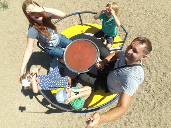 Naši děti milují jakékoliv "cestování"... hlavní pro ně ale je, aby tam byla máma i táta....tohle cestování si potom užívají nejvíce...i byť je to jen třeba na nedaleké dětské hřiště 😀 ....P.S.: jen tatínek má na tuto fotku trošku odlišný názor...ještě dnes, ač to bylo v létě, má v živé paměti, jak ukrutně rychle se to s ním točilo 😀DD