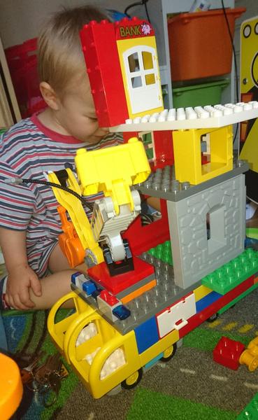 Starší už si staví většinou sám, mladšímu musíme pomoct. Ale začíná si s legem hrát i ta nejmenší a to nemá ještě ani rok 🙂