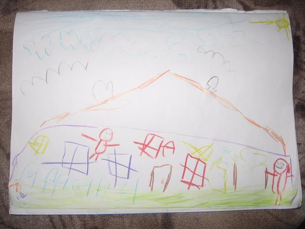 Tak toto je náš domeček. V každém spravném domečku u nás nesmí chybět parkovací místo na auto, a jak je vidět na první fotce kreativitě se meze nekladou, viz lední medvěd na střeše, lev stojící vedle pasoucí se krávy. 😉 Na druhé fotce je pak vidět,jak vypadá domeček po zemětřesení. Ale nic se neděje policie a zachránka už je na místě. 😀