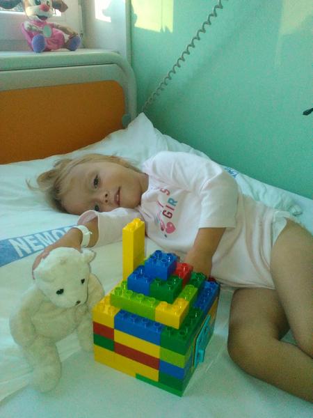 Dcera domecek stavi moc rada, respektive stavime ho spolu 🙂 Lego duplo bylo velkym pomocnikem i v nemocnici, kde samozrejme staveni domku nesmelo chybet viz. 1 foto 🙂