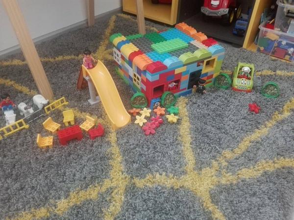 Milujeme stavění domečků! No,možná to trochu souvisí s tím, že maminka má vystudované stavebnictví a pracuje ve stavební firmě 😎 naštěstí děti moje stavěcí nadšení sdílejí, takže vám můžeme představit náš dnešní nejnovější projekt 😉 Dům je vhodný pro početnější rodinu duplo-panáčků, má zahradu i terasy....podle čtyřletého syna nesmí chybět garáž na traktor a velký komín. My s dcerkou se tam snažíme propašovat i něco holčičí jako kytky nebo nábytek 😉 bohužel pro nás, je jí teprve rok a půl, takže naše sbírka Dupla obsahuje spíš dopravní prostředky, podvozky...než zařízení domácnosti. Ježíšek holt bude muset poměr trošku vyvážit nějakou pořádně holčičí sadou 😂