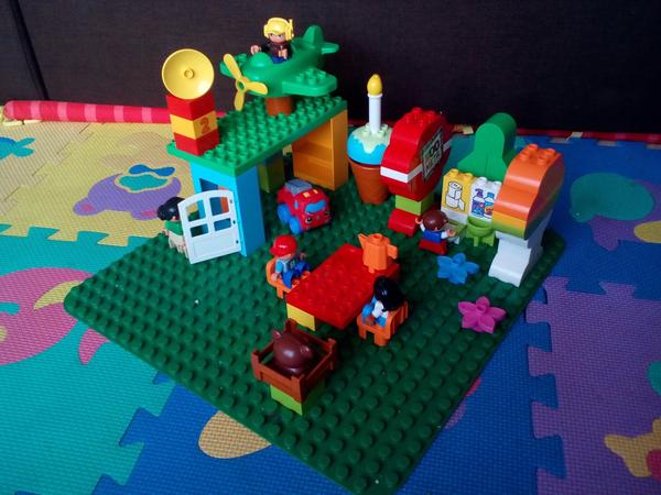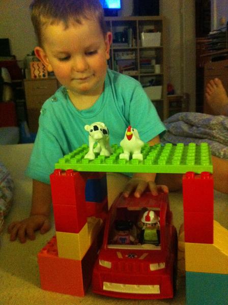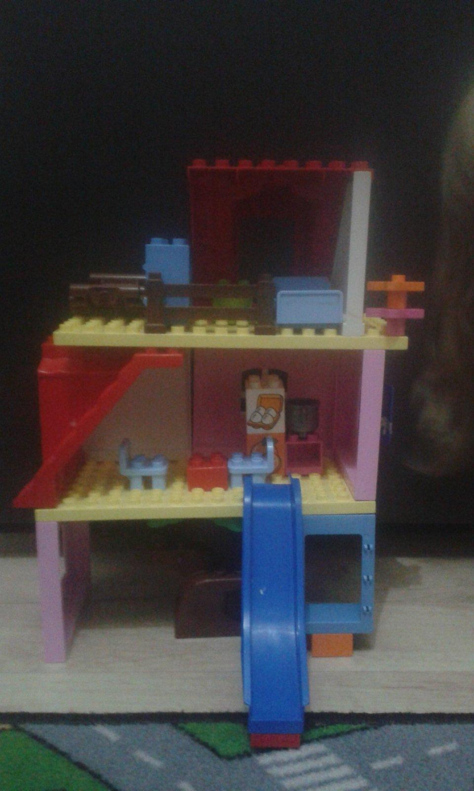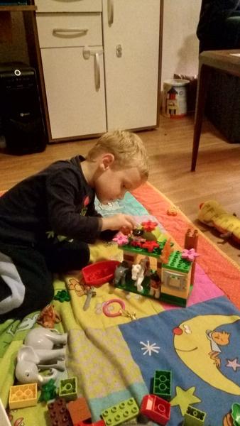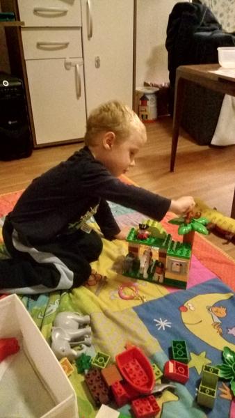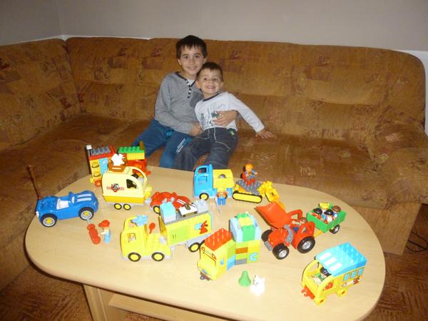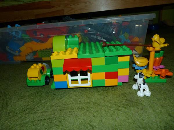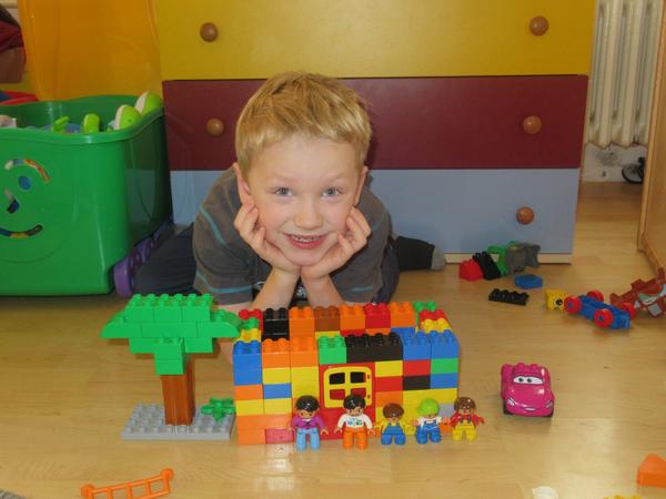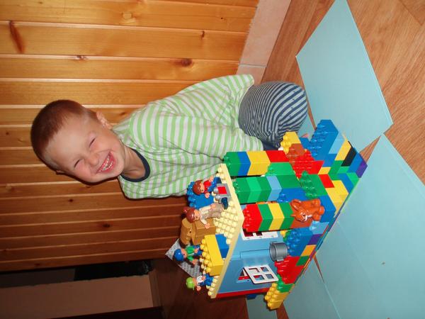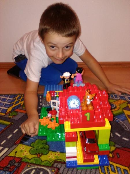 Starší syn ve velký stavitel nejrůznějších staveb,lego duplo je snad jediná hračka u které vydrží dlouho, vzdy nás překvapí něčím novým, na fotce je mrakodrap na kolečkách, bohužel nejsou moc vidět vychytávky jako klouzačka,schodiště,kadibudka,otočný domek nahoře apod.🙂 má to docela vymyšlený..vyhraje si i mladší syn, bohužel ten nejraději boura bráškovo stavby a tím dochází k častým bitkam.kostiček tudíž není nikdy dost, aby měl každý ty svoje😀