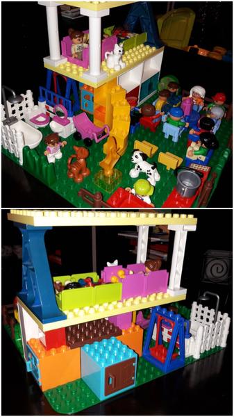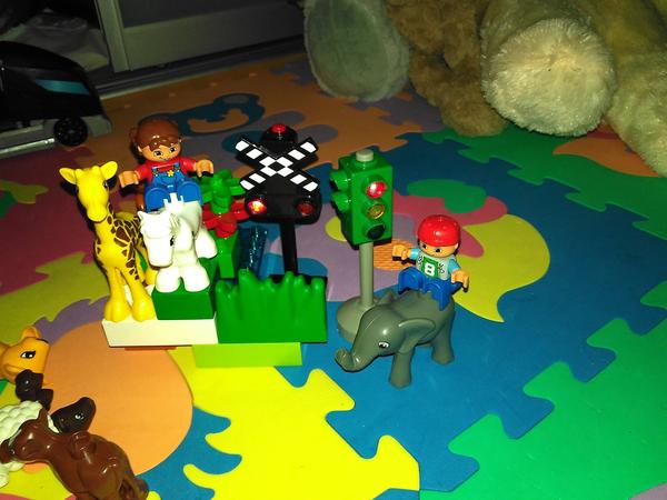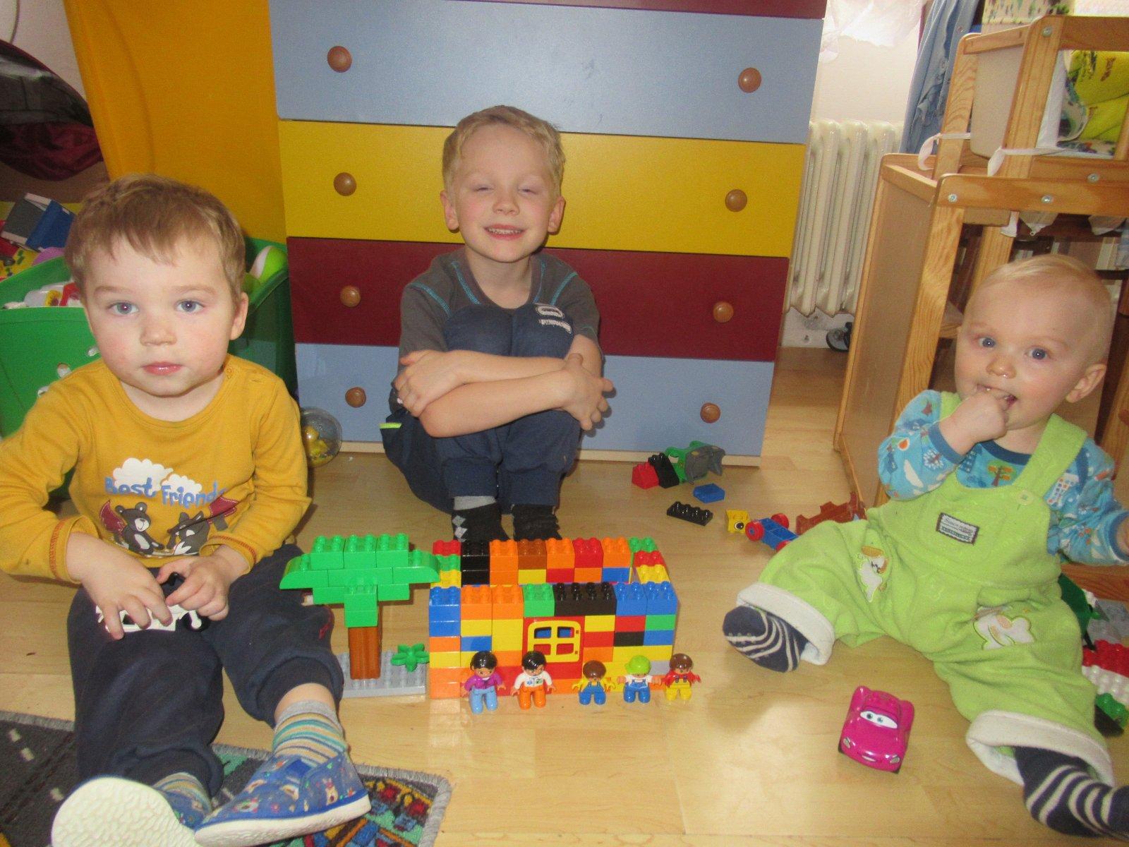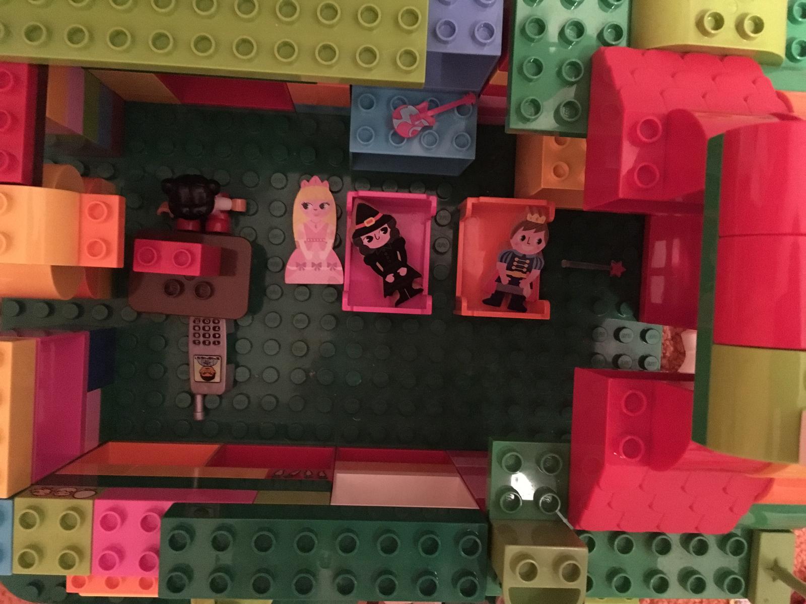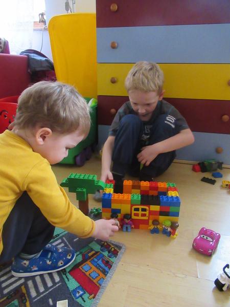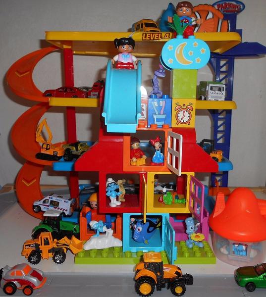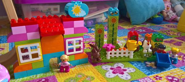 Starší syn ve velký stavitel nejrůznějších staveb,lego duplo je snad jediná hračka u které vydrží dlouho, vzdy nás překvapí něčím novým, na fotce je mrakodrap na kolečkách, bohužel nejsou moc vidět vychytávky jako klouzačka,schodiště,kadibudka,otočný domek nahoře apod.🙂 má to docela vymyšlený..vyhraje si i mladší syn, bohužel ten nejraději boura bráškovo stavby a tím dochází k častým bitkam.kostiček tudíž není nikdy dost, aby měl každý ty svoje😀