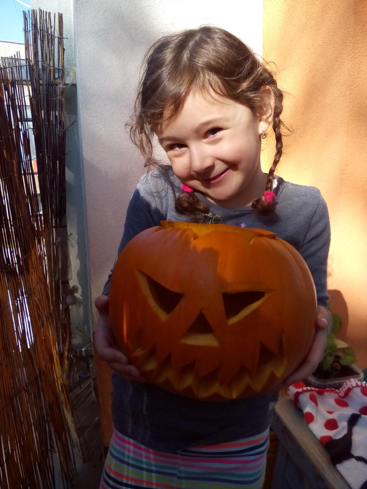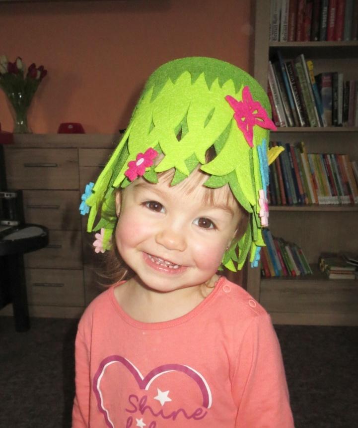 Na fotce je s jarní dekorací na květináč, prý má nový klobouk a může s ním do školky 😀