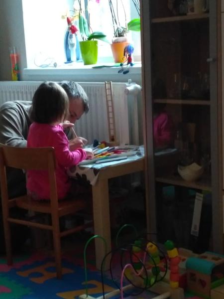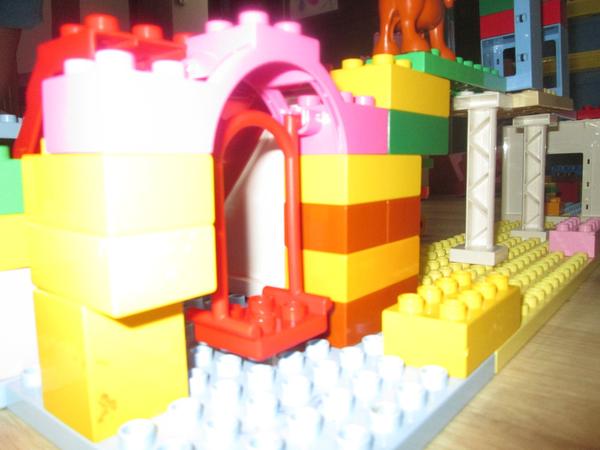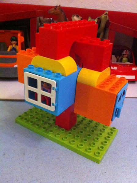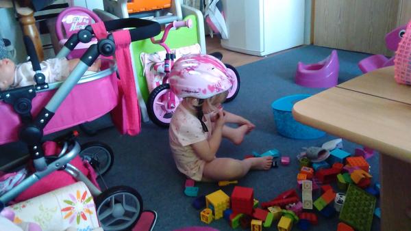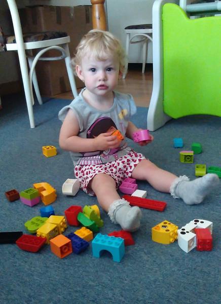 Tak tohle je teprve začínající výtvor naší dcery. Každý den mi "pomáhá" v kuchyni při vaření. Její nejoblíbenější atrakcí je skákání v nafukovacím hradu. Dokáže v něm skákat i třičtvrtě hodiny (občas jezdíme do nedalekého obchodního domu, kde mají asi pět skákacích hradů, zakoupíme lístek na 45 min a pak ji odtamtud ještě musíme tahat). Lego ještě doma bohužel nemáme, ale napíšeme o něj ježíškovi. 🙂