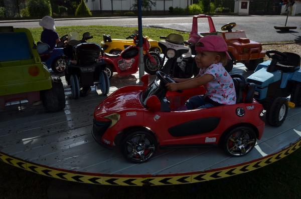 Poutě mají naše děti moc rády, pro ně bohužel, pro nás naštěstí jsou omezené ročním obdobím... první pouť začíná v dubnu ve vedlejší vesnici a "sezonu" končíme v září u babičky. Takže za ten "pouťový rok" navštívíme 6-7 poutí a bezpočet atrakcí. Vytvořené je děti bohužel nemají (Lego je zatím u nás na seznamu pro Ježíška) ,ale fotek z kolotočů máme habakuk 🙂