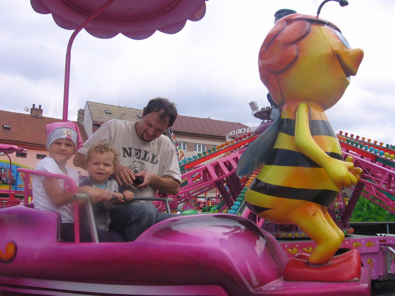 Každý rok k nám přijede pouť a letos to vypadalo, že si ty kolotoče asi budeme muset koupit domů, protože malý je odmítal opustit a nepomáhalo ani prosení, přemlouvání a vyhrožování. Musel vyzkoušet koníky, tramvaj, motorky, autíčka a všechny ostatní atrakce. Dokonce si troufnul s tatínkem absolvovat i labutě. Protočili jsme tam majlant, ale za tu radost v dětských očích to stálo 🙂