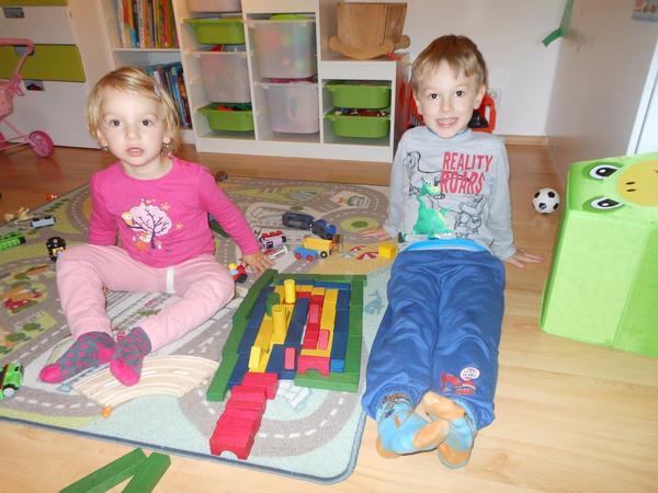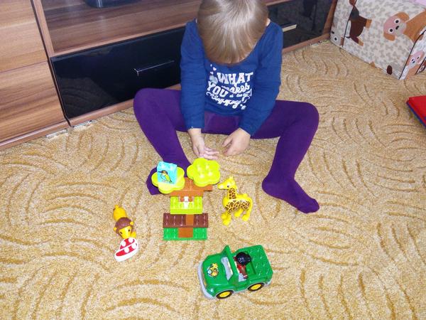 Viktorka (3 roky a 4 měs) postavila jakousi atrakci. Prý to může být klouzačka (takhle a takhle), ale taky houpačka (tak a tak). 😀 Nejlepší atrakce je ale prý jednoznačně skluzavka. Povídala, že nechápe, proč nám ji někdo ukradl z hřiště (skutečně se tak stalo) a už vůbec nechápe, že si to tatínek policajt neohlídal. 😂😂😂