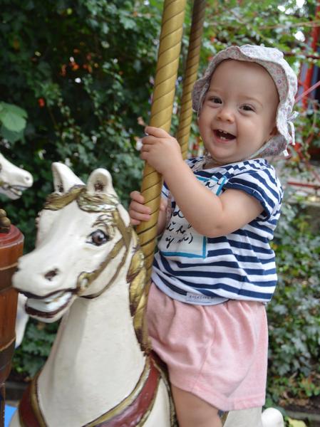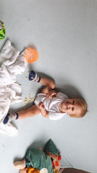 Nejlepší atrakce jsou ty, které si sama najde a vytvoří. Ať jsou to trubky topení, zábradlí na zahradě nebo třeba lehátko. Ale zbožňuje i klouzačku, kde jezdí zásadně po břiše hlavou dolů, a houpačka je taky evergreen. Ale best of? Když ji chytnu za ruku a nohu a děláme letadlo. Rok a půl staré dítě a směje se jako praštěná 😍