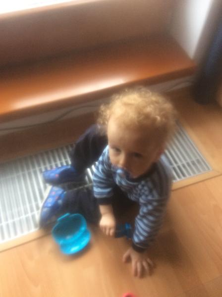 náš Honzík objevuje svět stejně jako tisíce jiných dětí v jeho věku 🙂 všechno "ochutnává", zkoumá letovou dráhu hraček a někdy i rohlíků, objevil zvukovou stupnici svých hlasivek, objevuje denně můj svět kuchyně a jejích šuplíků, objevil modní kousky v bráchově šuplíku a denně jim nedokáže odolat , objevuje denně nějaké zákoutí v domě nebo venku a je ve svém zkoumání opravdu vynalézavý 🙂