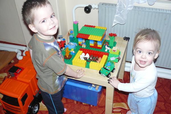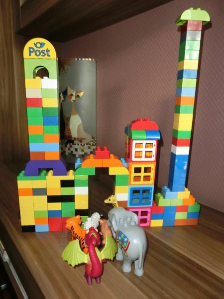 tohtorocnu sutaz s lego duplo sme ponali takmer ako tyzdenny projekt, odkedy je sutaz tak na tom pracujeme, teda Vam ponukame nase mestecko na stole, domcek na palicke, konickov na ktorych sa da i posediet, dvoch mimonakov a jeden vynalez (vpredu pred stolom)